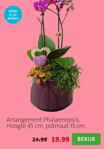 Arrangement Phalaenopsis. Hoogte 45 cm, potmaat 15 cm. aanbieding bij Intratuin – binnenkort verwacht