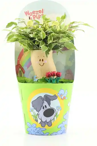Nu in de aanbieding bij Intratuin: Arrangement Woezel & Pip Tante perenboom (Ficus benjamina 'Kinky')D 14 H 35 cm✅ Actie geldig van 25-04 t/m 2-05.