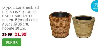 Drypot. Bananenblad met kunststof, bruin, diverse soorten en maten aanbieding bij Intratuin – binnenkort verwacht
