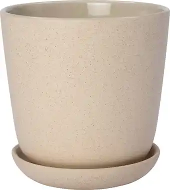 Intratuin bloempot met schotel Shai beige D 13,7 H 14 cm