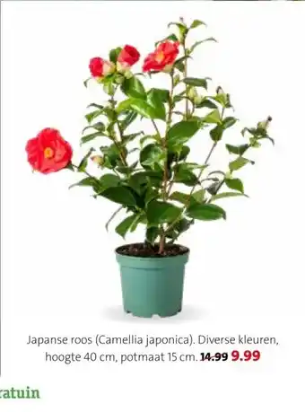 De prijs van de Japanse roos (Camellia japonica) kan ook teruggevonden worden hierboven op de pagina, samen met de datum van wanneer de aanbieding beschikbaar is. Ook kun je de prijzen in de huidige Intratuin folder of op de Intratuin website controleren. De aanbiedingen verzekeren je van het kopen van de Intratuin producten voor de laagste prijs.