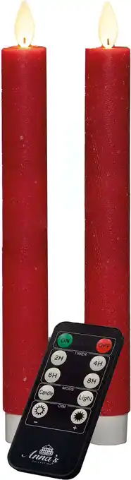 Led dinerkaars rustiek rood d 2,5 h 23 cm 2 stuks