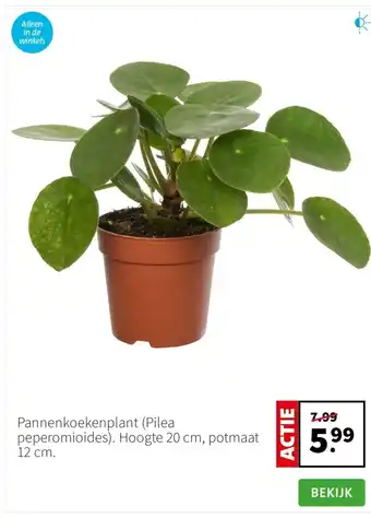 De prijs van de Pannenkoekenplant (Pilea peperomioides). Hoogte 20 cm, potmaat 12 cm. kan ook teruggevonden worden hierboven op de pagina, samen met de datum van wanneer de aanbieding beschikbaar is. Ook kun je de prijzen in de huidige Intratuin folder of op de Intratuin website controleren. De aanbiedingen verzekeren je van het kopen van de Intratuin producten voor de laagste prijs.