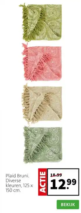 Nu in de aanbieding bij Intratuin: Plaid Bruni. Diverse kleuren, 125 x 150 cm.✅ Actie geldig van 27-04 t/m 3-05.