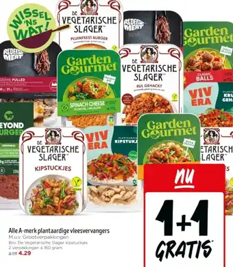 Alle A-merk plantaardige vleesvervangers 160 gram 1+1 GRATIS