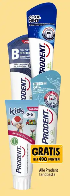 Alle Prodent tandpasta biedt complete bescherming voor de gehele mond. Met 24 uur bescherming tegen gaatjes, langdurige frisheid en gezonde tanden, wangen en tong. De Fresh Gel met frisse muntsmaak zorgt voor een extra frisse adem. Deze tandpasta beschermt tegen zuren (suiker) en verbetert de mondhygiëne. Prodent 4in1 tandpasta helpt bij het voorkomen van gaatjes, versterkt het tandglazuur en beschermt tegen zuren en suikers. Speciale varianten zijn beschikbaar voor kinderen van 0-6 jaar, met aardbeiensmaak en zonder SLS. Prodent tandpasta is superieur in bescherming tegen gaatjes en zorgt voor langdurige frisheid. Verzamel 490 punten en ontvang een gratis tube Prodent tandpasta.
