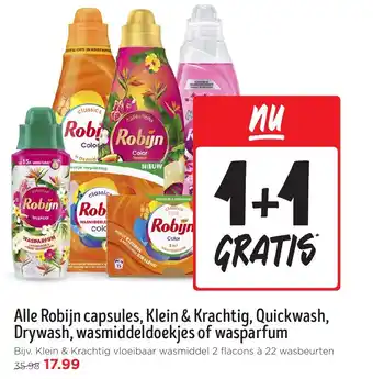 Koop Alle Robijn capsules, Klein & Krachtig, Quickwash, Drywash, wasmiddeldoekjes of wasparfum komende week met korting