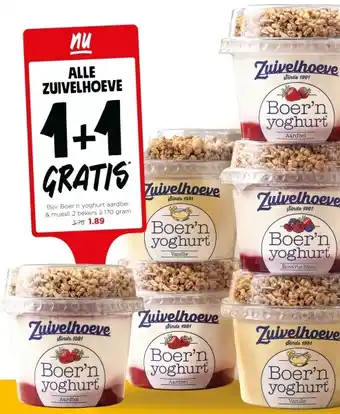 Bijv. Boer'n yoghurt aardbei & muesli 2 bekers à 170 gram