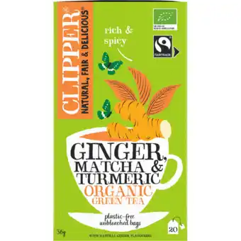 Clipper Ginger Matcha & Turmeric Organic Green Tea 20 Zakjes 36 g aanbieding en online acties bij Jumbo