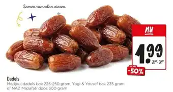 Medjoul dadels bak 225-250 gram, Yogi & Yousef bak 235 gram of NAZ Mazafati doos 500 gram