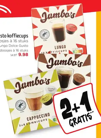 Jumbo biedt naast de Dolce Gusto Koffiecups een ruime collectie producten aan. Houd de wekelijkse Jumbo folder in de gaten om de beste aanbiedingen en acties te vinden. Naast Dolce Gusto Koffiecups, kunt u ook de volgende aanbiedingen vinden: Nescafe dolce gusto koffiecups, Nescafé en Starbucks Dolce Gusto Koffiecups & Nescafe Dolce Gusto koffiecups cortado.