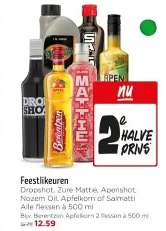 Maak van jouw feest een knalfeest met onze heerlijke feestlikeuren! Kies uit verschillende smaken zoals Dropshot, Zure Mattie, Apenshot, Nozem Oil, Apfelkorn of Salmatti. Alle flessen hebben een inhoud van 500 ml, zoals bijvoorbeeld de Berentzen Apfelkorn waarvan je nu 2 flessen kunt krijgen voor slechts €12.59. Met deze feestlikeuren zorg je voor een gezellige sfeer en een onvergetelijke avond. Of je nu houdt van zoet, zuur of een mix van smaken, er is voor ieder wat wils. Bestel snel en geniet van de lekkerste shotjes op jouw feest!