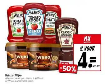 Geniet nu van de heerlijke sauzen van Heinz of Wijko met een korting tot wel 50%! Kies uit klassiekers zoals Heinz Tomato Ketchup of Wijko Satésaus, of probeer iets nieuws zoals Heinz No Added Sugar & Salt Ketchup. Alle verpakkingen van Heinz van 400 ml en Wijko van 250-540 gram zijn in de aanbieding. Of je nu gaat voor de klassieke smaak van Heinz Tomato Ketchup Pickle of de rijke smaak van Wijko Satésaus, er is voor ieder wat wils. Mis deze kans niet en haal jouw favoriete sauzen in huis voor een voordelige prijs. Deze actie is geldig zolang de voorraad strekt, dus sla snel je slag!