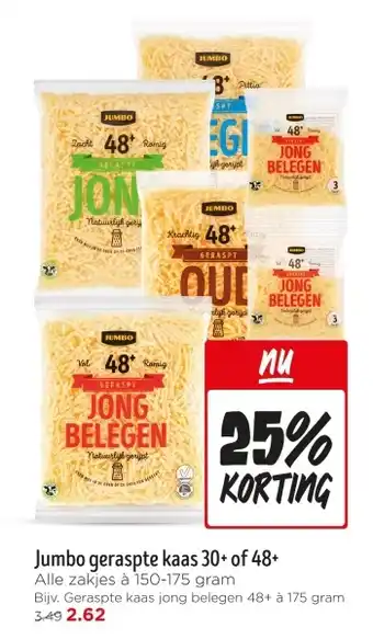 Jumbo geraspte kaas 30+ of 48+ korting bij Jumbo