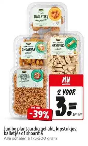 Jumbo plantaardig gehakt, kipstukjes, balletjes of shoarmă aanbieding bij Jumbo