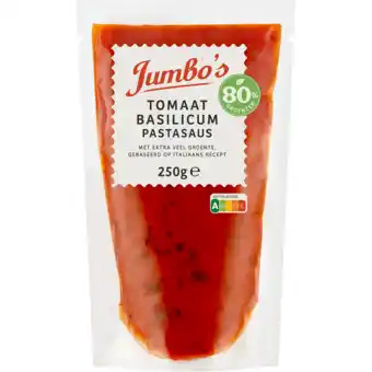 Jumbo's Tomaat Basilicum Pastasaus 250 g aanbieding en online acties bij Jumbo