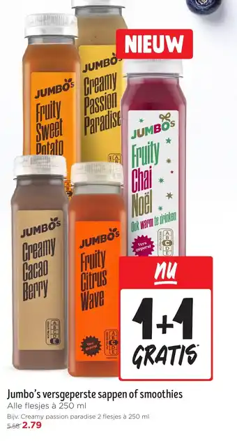 Jumbo's versgeperste sappen of smoothies 500 ml 1+1 GRATIS
