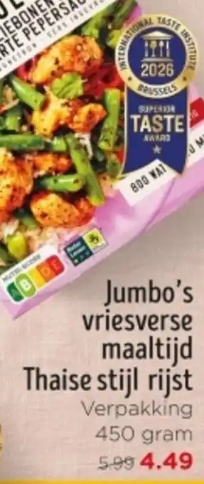 Jumbo's vriesverse maaltijd Thaise stijl rijst aanbieding en online acties bij Jumbo