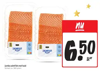De prijs van de Jumbo zalmfilet met huid kan ook teruggevonden worden hierboven op de pagina, samen met de datum van wanneer de aanbieding beschikbaar is. Ook kun je de prijzen in de huidige Jumbo folder of op de Jumbo website controleren. De aanbiedingen verzekeren je van het kopen van de Jumbo producten voor de laagste prijs.