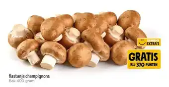 Jumbo biedt naast de Kastanje champignons een ruime collectie producten aan. Houd de wekelijkse Jumbo folder in de gaten om de beste aanbiedingen en acties te vinden. Naast Kastanje champignons, kunt u ook de volgende aanbiedingen vinden: KASTANJE CHAMPIGNONS, Gesneden Kastanje- champignons & Gesneden Kastanje- champignons.