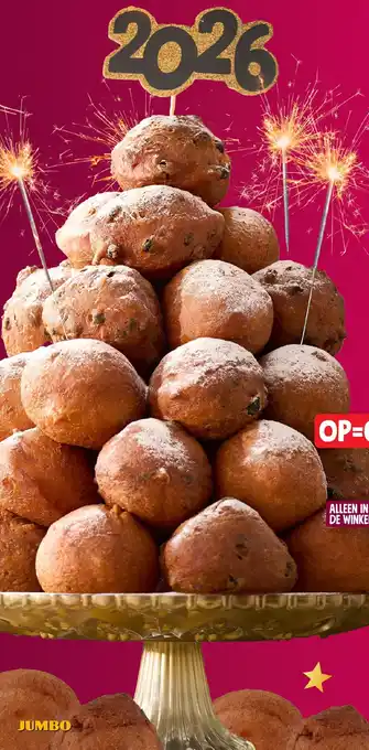 Haal nu heerlijke oliebollen voor Oud & Nieuw bij Jumbo! Geniet van deze traditionele lekkernij om het nieuwe jaar feestelijk in te luiden. Onze verse oliebollen zijn alleen verkrijgbaar in de winkel, dus wees er snel bij, want op=op! Met onze ambachtelijke receptuur en kwaliteitsingrediënten ben je verzekerd van de lekkerste oliebollen. Proef de smaak van traditie en vier het nieuwe jaar met een heerlijke traktatie. Of je nu kiest voor de klassieke oliebol met krenten of liever een variant zonder, bij Jumbo vind je voor ieder wat wils. Kom langs in onze winkel en haal jouw oliebollen voor een smaakvolle start van 2026!