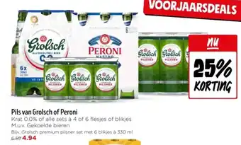 Koop Pils van Grolsch of Peroni komende week met korting