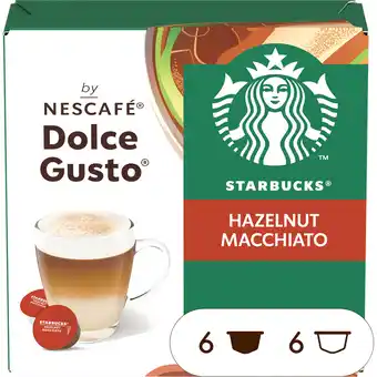 Nu in de aanbieding bij Jumbo: Starbucks by Nescafé Dolce Gusto Hazelnootsmaak Macchiato 123 g✅ Actie geldig van 25-02 t/m 10-03.