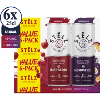STËLZ - Hard Seltzer - Raspberry / Passionfruit Voordeelpack - 6 x 250ML aanbieding bij Jumbo