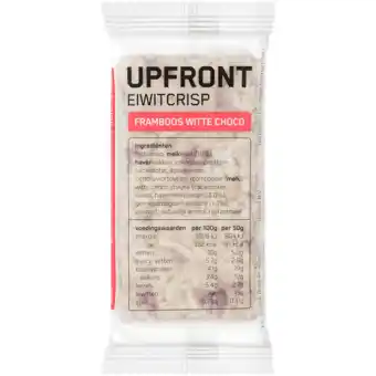 Koop Upfront Eiwitreep Cripsy Witte Choco Framboos 50g komende week met korting