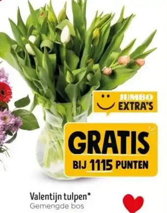 Jumbo biedt naast de Valentijn tulpen een ruime collectie producten aan. Houd de wekelijkse Jumbo folder in de gaten om de beste aanbiedingen en acties te vinden. Naast Valentijn tulpen, kunt u ook de volgende aanbiedingen vinden: Tulpen, Tulpen & Tulpen.