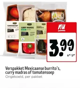 Verspakket Mexicaanse burrito's, curry madras of tomatensoep korting bij Jumbo