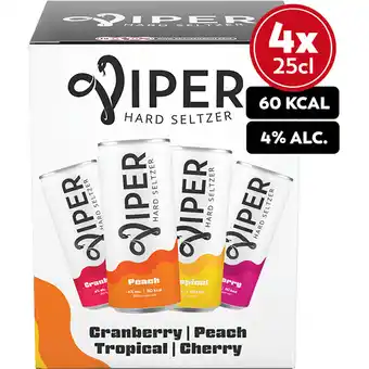 Viper Hard Seltzer Cherry / Tropical / Cranberry / Peach Multipack 4x250ML aanbieding bij Jumbo – binnenkort verwacht