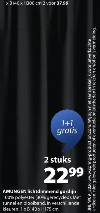 Amungen lichtdimmend gordijn 1 x 140 x 175 cm 1+1 gratis