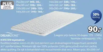 Dreamzone Kvisten topmatras aanbieding en online acties bij Jysk