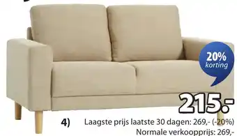 Op zoek naar een comfortabele en stijlvolle bank voor in huis? De Egense bank is nu verkrijgbaar met maar liefst 20% korting! De normale verkoopprijs van deze bank is 269,-, maar met de huidige korting betaal je slechts 215,20. Deze bank is van hoge kwaliteit en biedt een heerlijk zitcomfort. De Egense bank past perfect in elk interieur en is een echte eyecatcher in de woonkamer. Profiteer nu van deze aanbieding en haal deze prachtige bank in huis voor een zeer scherpe prijs. Wees er snel bij, want op = op! Bestel de Egense bank vandaag nog en geniet binnenkort van ultiem comfort en stijl in jouw woning.