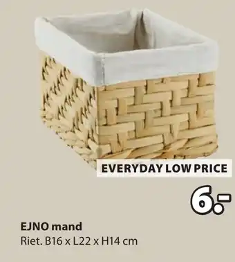 De prijs van de EJNO mand kan ook teruggevonden worden hierboven op de pagina, samen met de datum van wanneer de aanbieding beschikbaar is. Ook kun je de prijzen in de huidige Jysk folder of op de Jysk website controleren. De aanbiedingen verzekeren je van het kopen van de Jysk producten voor de laagste prijs.