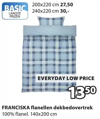 De prijs van de Franciska flanellen dekbedovertrek kan ook teruggevonden worden hierboven op de pagina, samen met de datum van wanneer de aanbieding beschikbaar is. Ook kun je de prijzen in de huidige Jysk folder of op de Jysk website controleren. De aanbiedingen verzekeren je van het kopen van de Jysk producten voor de laagste prijs.
