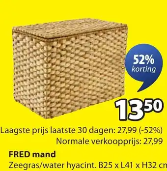 De prijs van de Fred mand kan ook teruggevonden worden hierboven op de pagina, samen met de datum van wanneer de aanbieding beschikbaar is. Ook kun je de prijzen in de huidige Jysk folder of op de Jysk website controleren. De aanbiedingen verzekeren je van het kopen van de Jysk producten voor de laagste prijs.