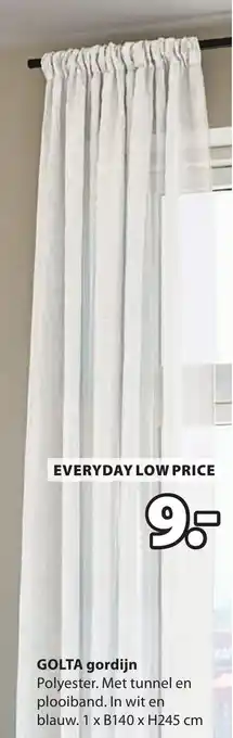 De prijs van de Golta gordijn kan ook teruggevonden worden hierboven op de pagina, samen met de datum van wanneer de aanbieding beschikbaar is. Ook kun je de prijzen in de huidige Jysk folder of op de Jysk website controleren. De aanbiedingen verzekeren je van het kopen van de Jysk producten voor de laagste prijs.