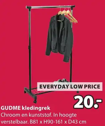 De prijs van de Gudme kledingrek kan ook teruggevonden worden hierboven op de pagina, samen met de datum van wanneer de aanbieding beschikbaar is. Ook kun je de prijzen in de huidige Jysk folder of op de Jysk website controleren. De aanbiedingen verzekeren je van het kopen van de Jysk producten voor de laagste prijs.
