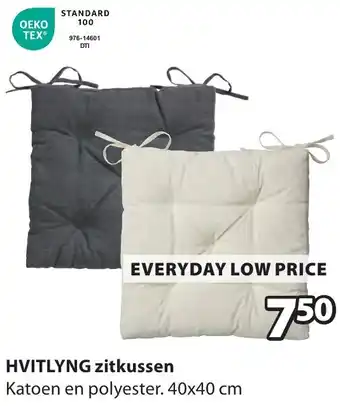 De prijs van de Hvitlyng zitkussen kan ook teruggevonden worden hierboven op de pagina, samen met de datum van wanneer de aanbieding beschikbaar is. Ook kun je de prijzen in de huidige Jysk folder of op de Jysk website controleren. De aanbiedingen verzekeren je van het kopen van de Jysk producten voor de laagste prijs.