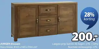 De prijs van de Jungen dressoir kan ook teruggevonden worden hierboven op de pagina, samen met de datum van wanneer de aanbieding beschikbaar is. Ook kun je de prijzen in de huidige Jysk folder of op de Jysk website controleren. De aanbiedingen verzekeren je van het kopen van de Jysk producten voor de laagste prijs.