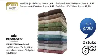 De KARLSTAD handdoek is gemaakt van 100% katoen en staat bekend om zijn exclusieve kwaliteit. Deze handdoek is zacht, dik en zeer absorberend met een gewicht van 500 g/m². Met een afmeting van 50x100 cm is deze handdoek perfect voor dagelijks gebruik. Nu tijdelijk verkrijgbaar in een 1+1 gratis aanbieding, waardoor je 2 stuks krijgt voor slechts 6.99. Profiteer van deze deal en geniet van luxe en comfort in je badkamer. De KARLSTAD handdoek is een echte aanwinst voor je collectie en zal je keer op keer verwennen met zijn kwaliteit en zachtheid. Voeg deze handdoeken toe aan je badkamer en ervaar het verschil van echte Scandinavische topkwaliteit.