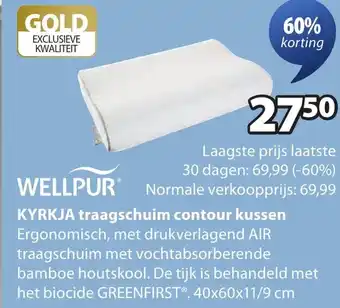 De prijs van de Kyrkja traagschuim contour kussen kan ook teruggevonden worden hierboven op de pagina, samen met de datum van wanneer de aanbieding beschikbaar is. Ook kun je de prijzen in de huidige Jysk folder of op de Jysk website controleren. De aanbiedingen verzekeren je van het kopen van de Jysk producten voor de laagste prijs.