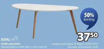 50% korting op ROYAL OAK LEJRE salontafel van massief eiken en MDF