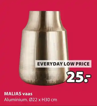 De prijs van de MALIAS vaas kan ook teruggevonden worden hierboven op de pagina, samen met de datum van wanneer de aanbieding beschikbaar is. Ook kun je de prijzen in de huidige Jysk folder of op de Jysk website controleren. De aanbiedingen verzekeren je van het kopen van de Jysk producten voor de laagste prijs.