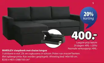 De prijs van de Marslev slaapbank met chaise longue kan ook teruggevonden worden hierboven op de pagina, samen met de datum van wanneer de aanbieding beschikbaar is. Ook kun je de prijzen in de huidige Jysk folder of op de Jysk website controleren. De aanbiedingen verzekeren je van het kopen van de Jysk producten voor de laagste prijs.