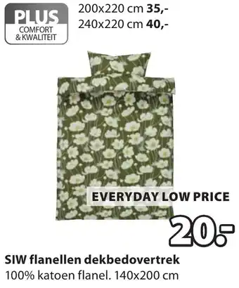 De prijs van de SIW flanellen dekbedovertrek kan ook teruggevonden worden hierboven op de pagina, samen met de datum van wanneer de aanbieding beschikbaar is. Ook kun je de prijzen in de huidige Jysk folder of op de Jysk website controleren. De aanbiedingen verzekeren je van het kopen van de Jysk producten voor de laagste prijs.