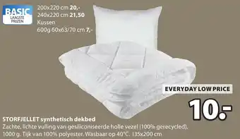 De prijs van de Storfjellet synthetisch dekbed kan ook teruggevonden worden hierboven op de pagina, samen met de datum van wanneer de aanbieding beschikbaar is. Ook kun je de prijzen in de huidige Jysk folder of op de Jysk website controleren. De aanbiedingen verzekeren je van het kopen van de Jysk producten voor de laagste prijs.