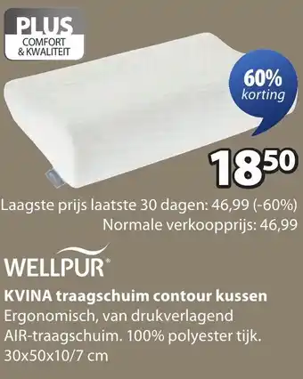 Wellpur Kvina traagschuim contour kussen aanbieding bij Jysk – binnenkort verwacht